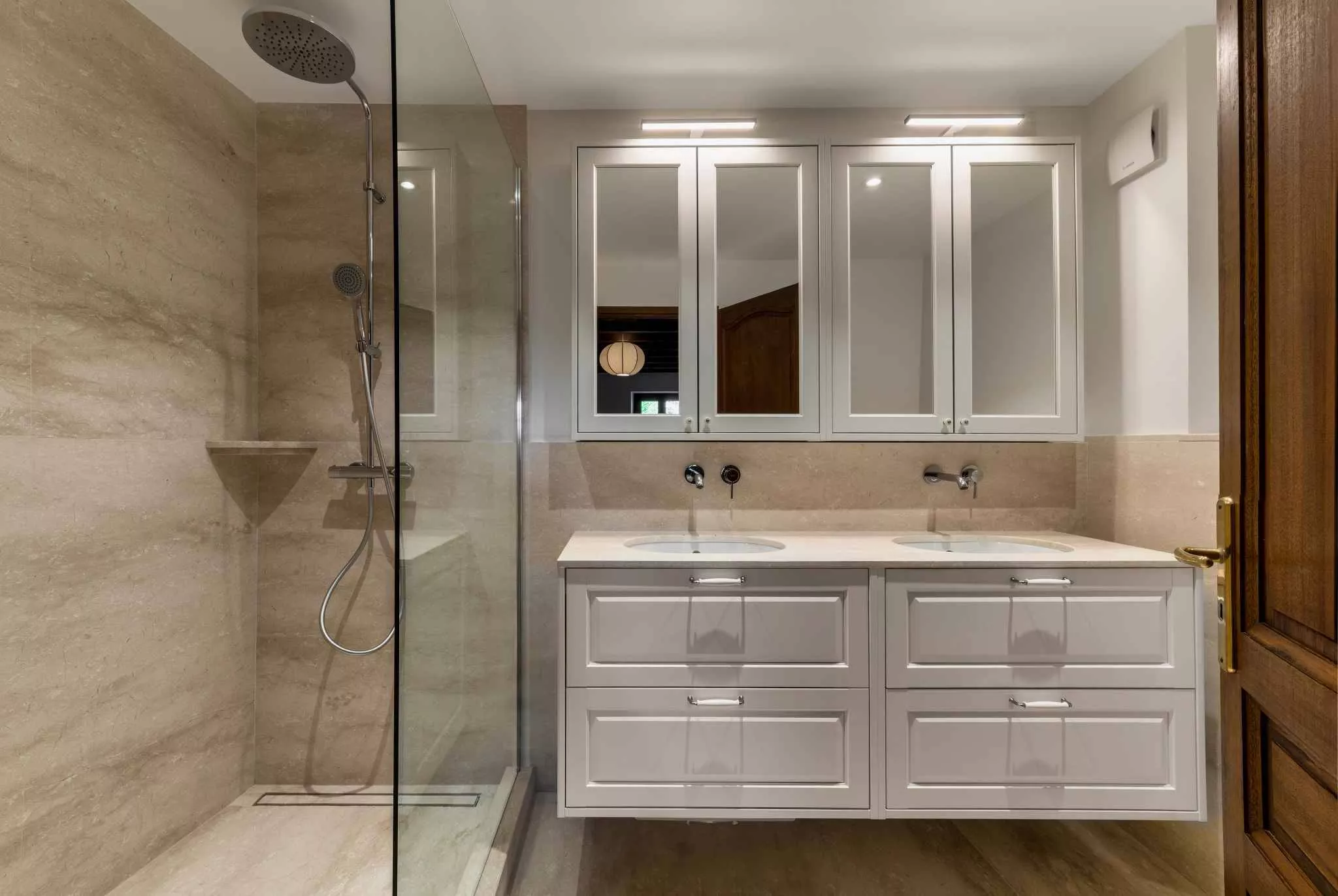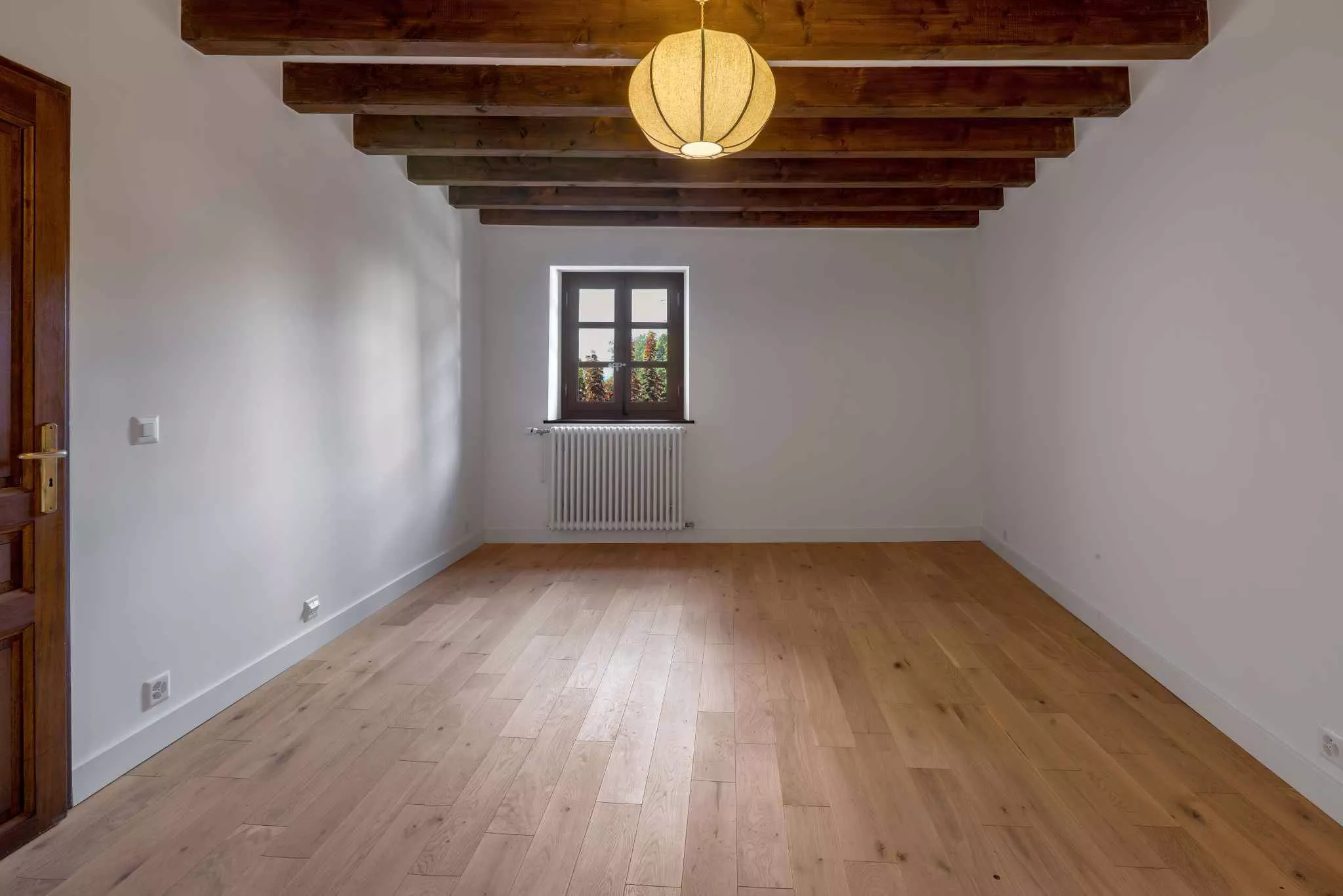 Les deux premiers étages sont aménagés chacun avec une grande chambre à coucher et une salle de bains complète. Le dernier niveau accueille une chambre mansardée avec sa salle de douche complète.